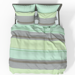 Rauhoittava vihreän ja harmaan sävyjen yhdistelmä minimalistisilla raidoilla luo kodikkaan ja harmonisen sisustuksen. Tämä design sopii erinomaisesti niille, jotka arvostavat luonnollisia värejä ja modernia tyyliä.