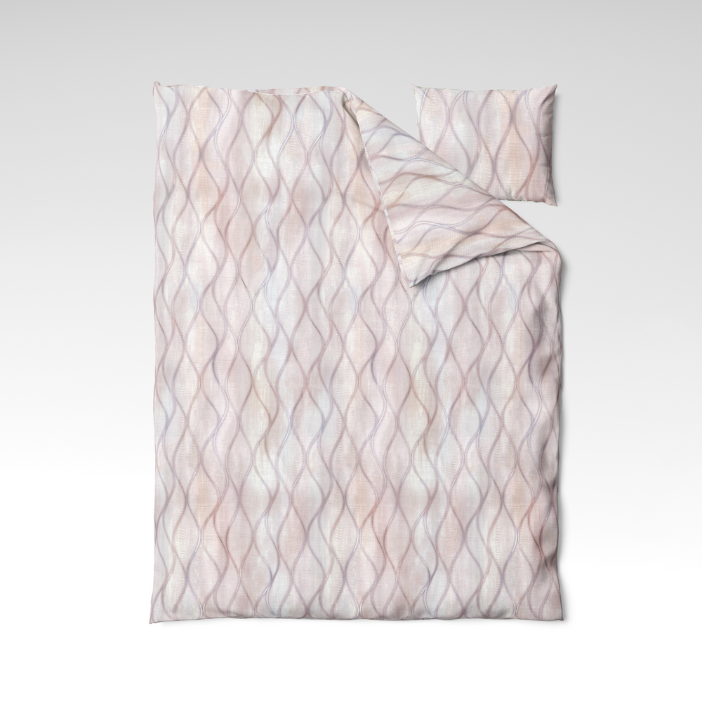🌬 Blush Flow – kevytas ir grakštus audinys, dekoruotas banguotu raštu pastelinėje fone. Švelnūs perėjimai tarp rožinių, alyvinių ir smėlio atspalvių sukuria vizualinį šilumos ir švaros pojūtį. Puikiai tinka šviesiam, romantiškam ar minimalistiniam interjerui.