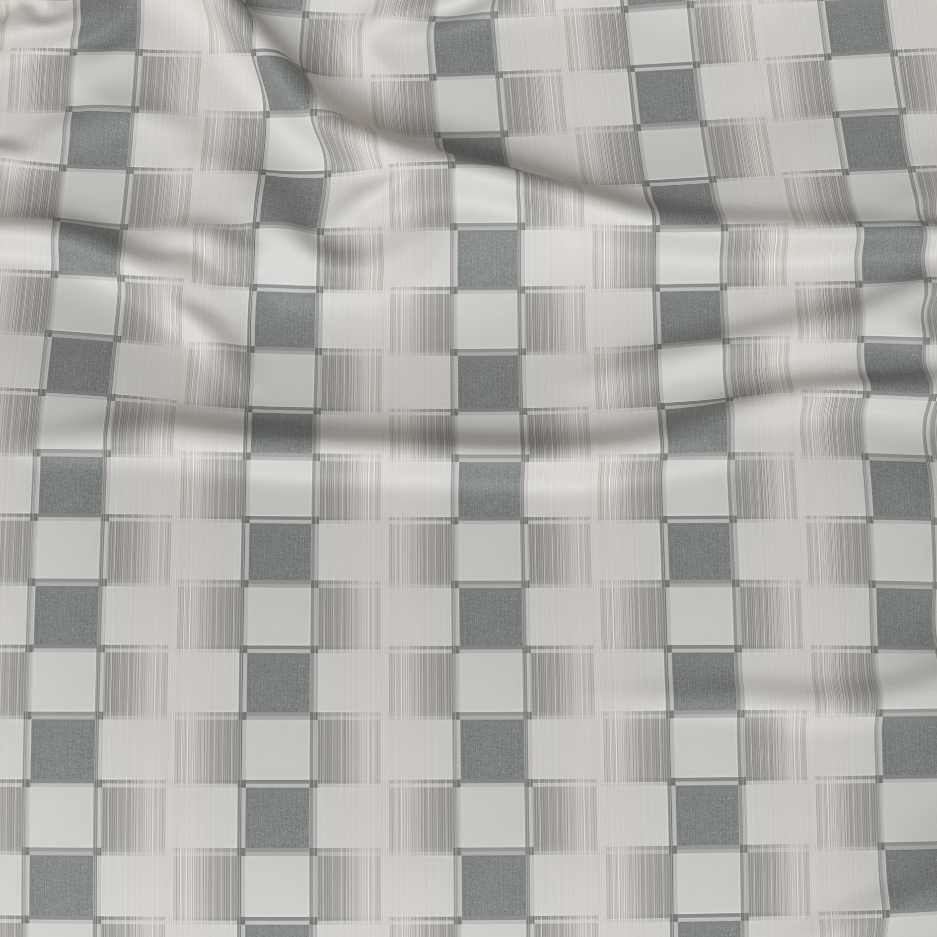 Minimalistic design inspired by a chessboard, combining sand and grey tones, will perfectly complement a contemporary or industrial style bedroom.
