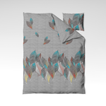 🍃 Jungle Lines – moderni ja energinen design, jossa harmaalla raidallisella taustalla leikkisästi erottuvat tyylitellyt värikkäät lehdet. Turkoosin, oranssin, keltaisen ja korallin sävyt antavat designille nykyaikaista elinvoimaa, samalla säilyttäen harmonisen luonnosta inspiroituneen tyylin. Erinomainen valinta niille, jotka haluavat tuoda makuuhuoneeseensa väriä ja rakennetta.